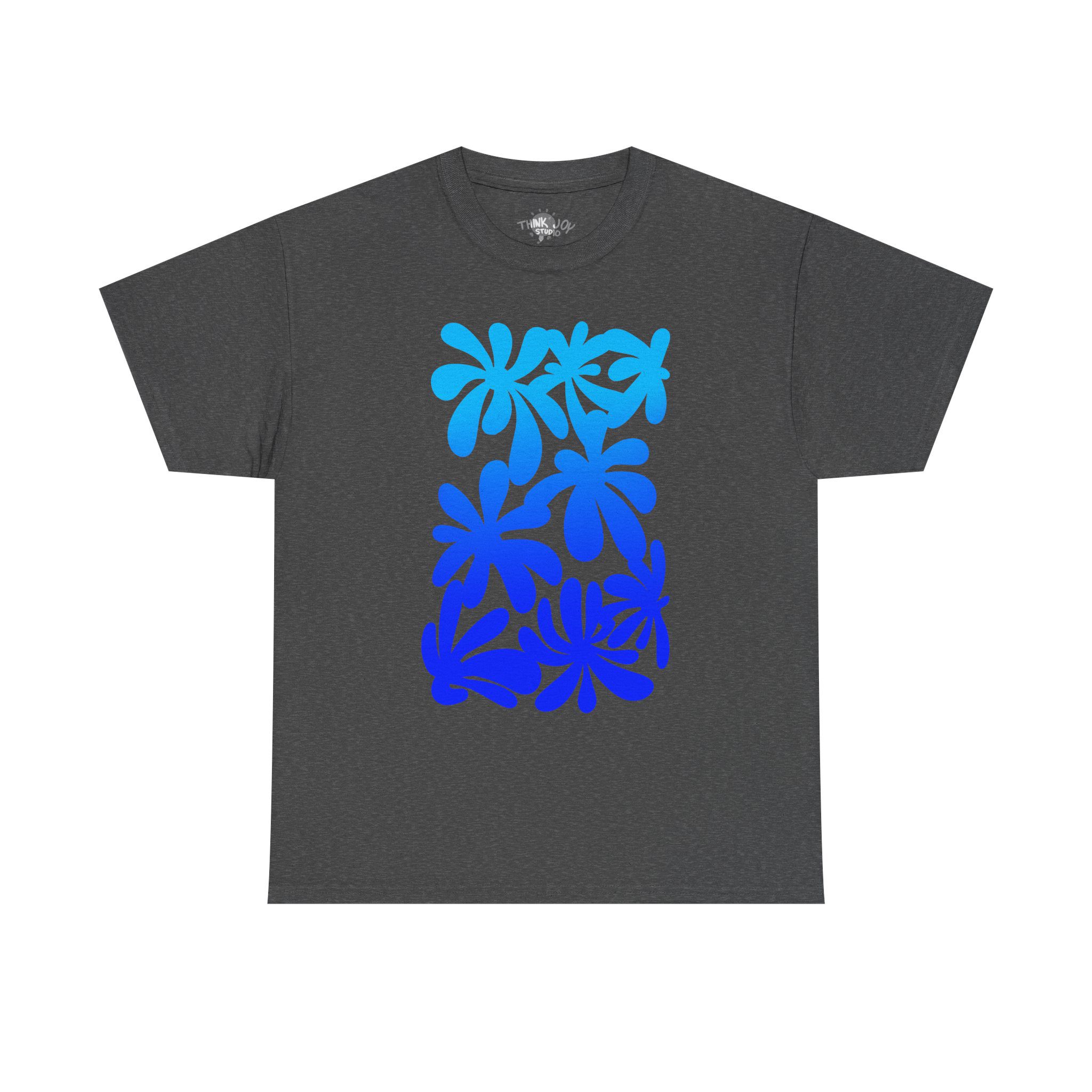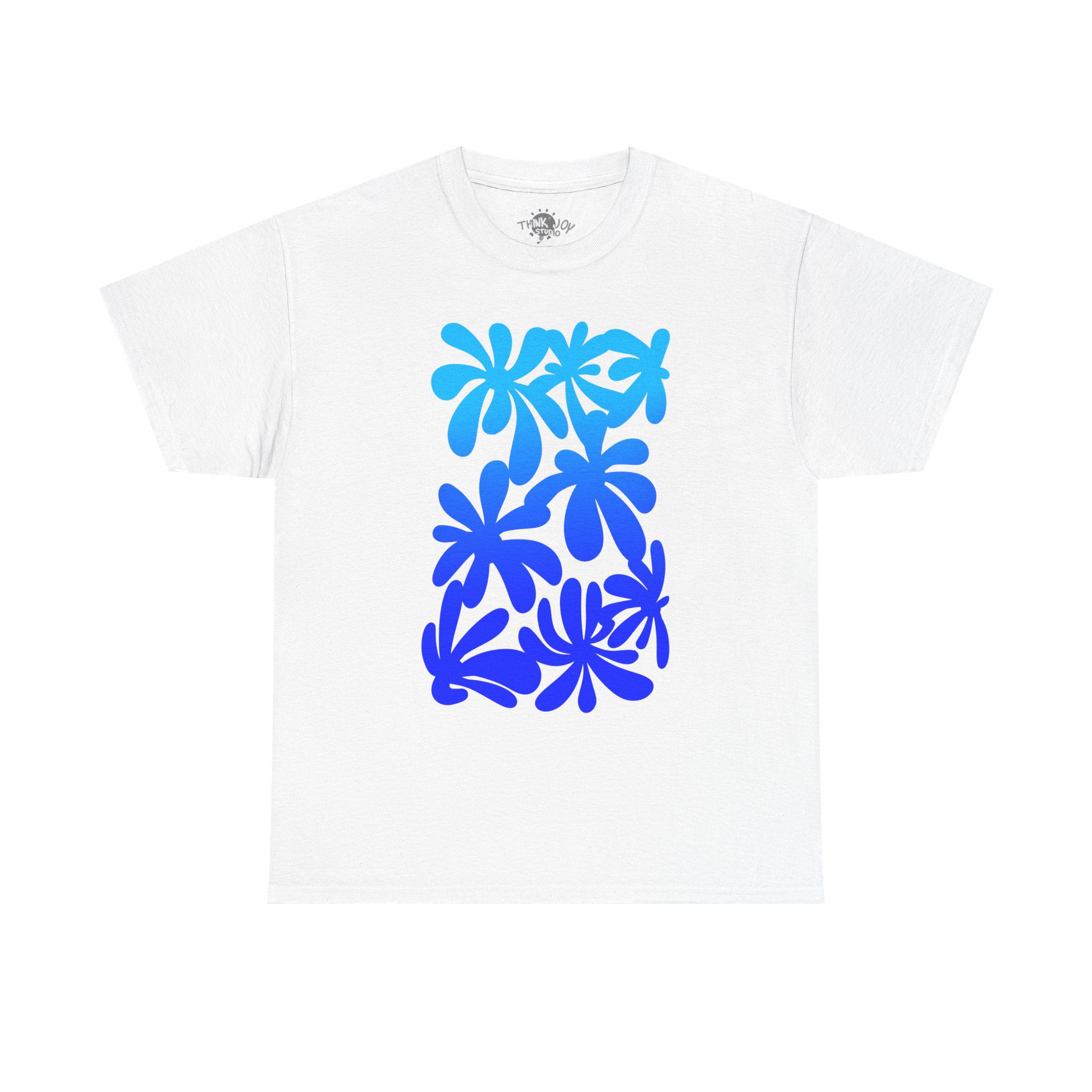 T-shirt with a unique, hand-drawn digital illustration, “A Window to Nature – Sky Blue Flowers”.
