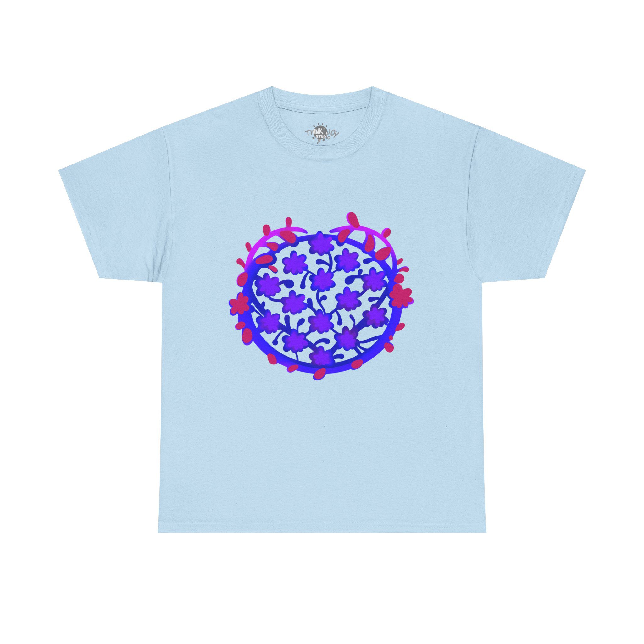 Vibrant t-shirt with a unique, hand-drawn digital illustration, “Blooming Dawn”.